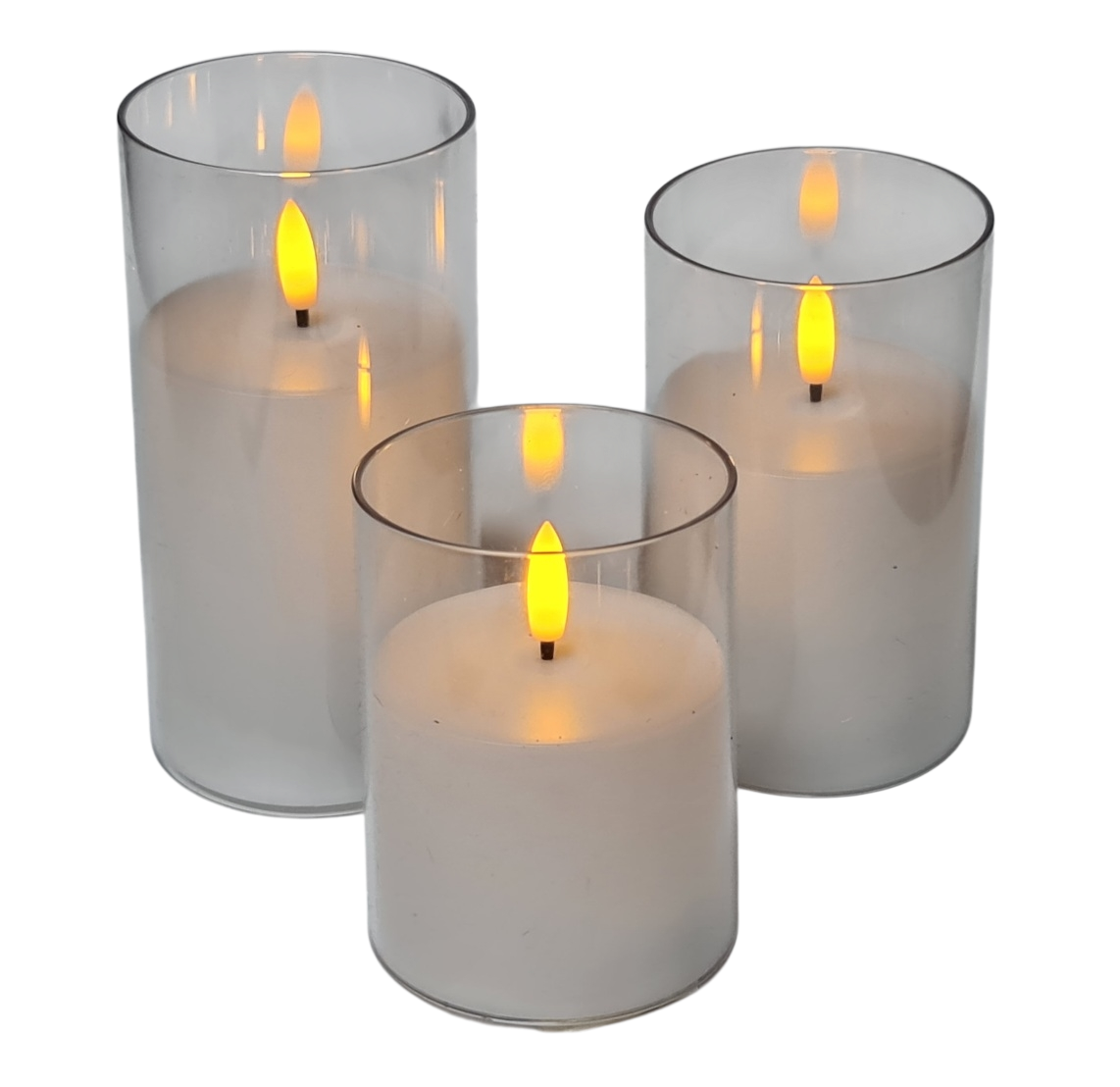 Elegantes LED Kerzenset Weiß mit transparenter Hülle und Fernbedienung – 3er Set