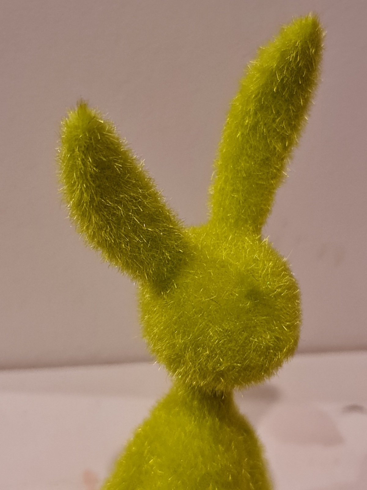 Die hochwertige Beflockung mit langen Fasern von ca. 5 mm verleiht dem Hasen eine besonders weiche, fellartige Oberfläche und sorgt für eine moderne, hochwertige Optik.