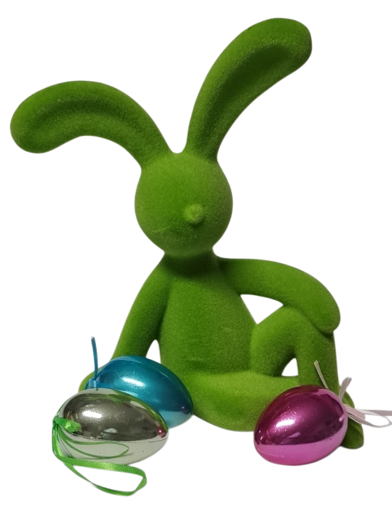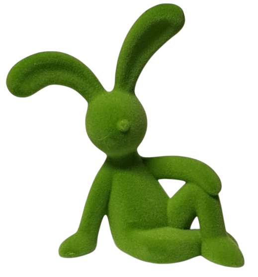 Lustiger grüner Osterhase sitzend – beflockte Osterdeko 23 x 15 cm