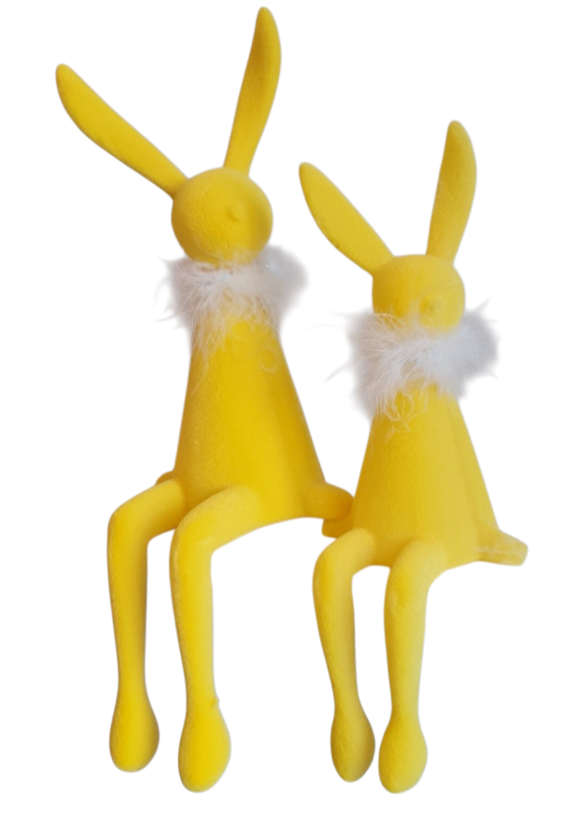 Kantenhocker Hase mit Fellkragen, gelb in 2 Größen