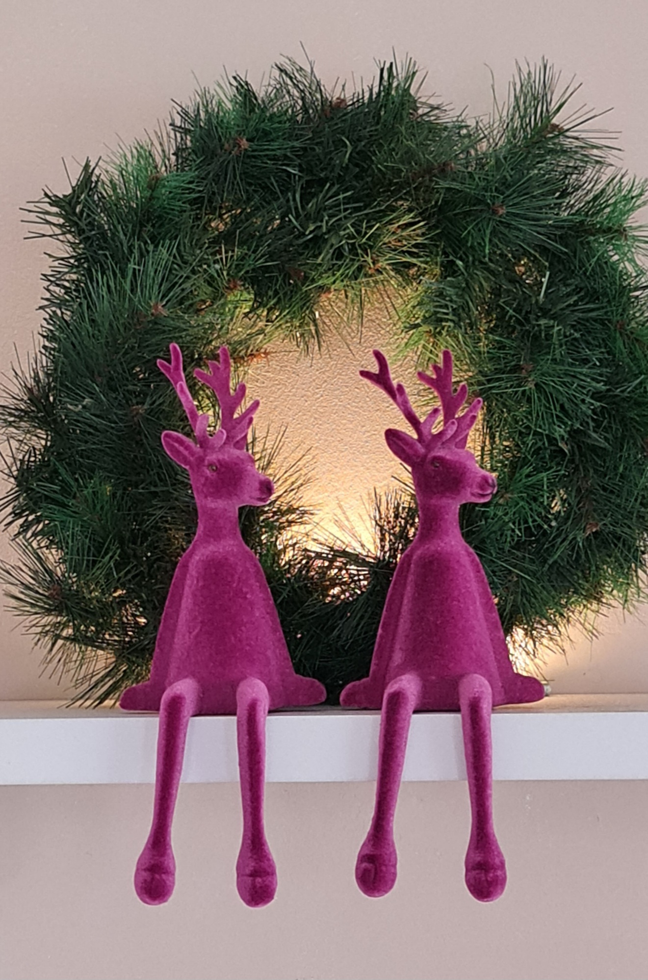 Dieser Hirsch, Kantenhocker in edlem Beerenton setzt außergewöhnliche Akzente in Ihrer Weihnachtsdekoration