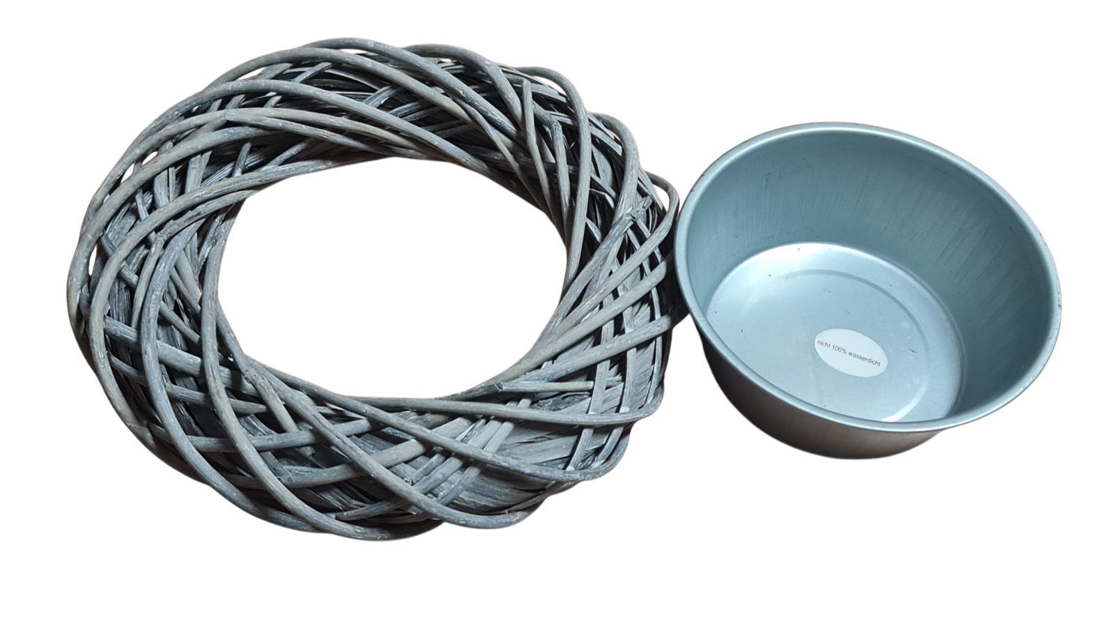 Beim 30-cm-Kranz beträgt der Durchmesser des Zinkeinsatzes 18,5 cm, beim 40-cm-Kranz 26 cm.