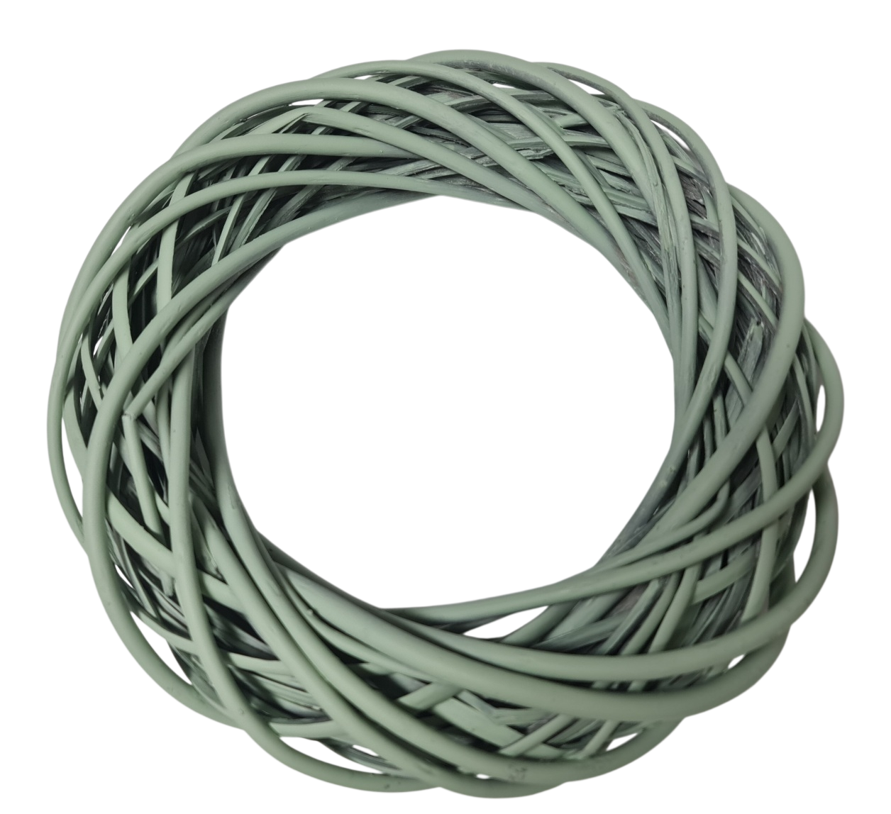 Die sorgfältig geflochtenen Zweige präsentieren sich in harmonischen Salbeigrün/Jadegrün-Ton und verleihen dem Kranz eine frische, zeitlose Ausstrahlung.